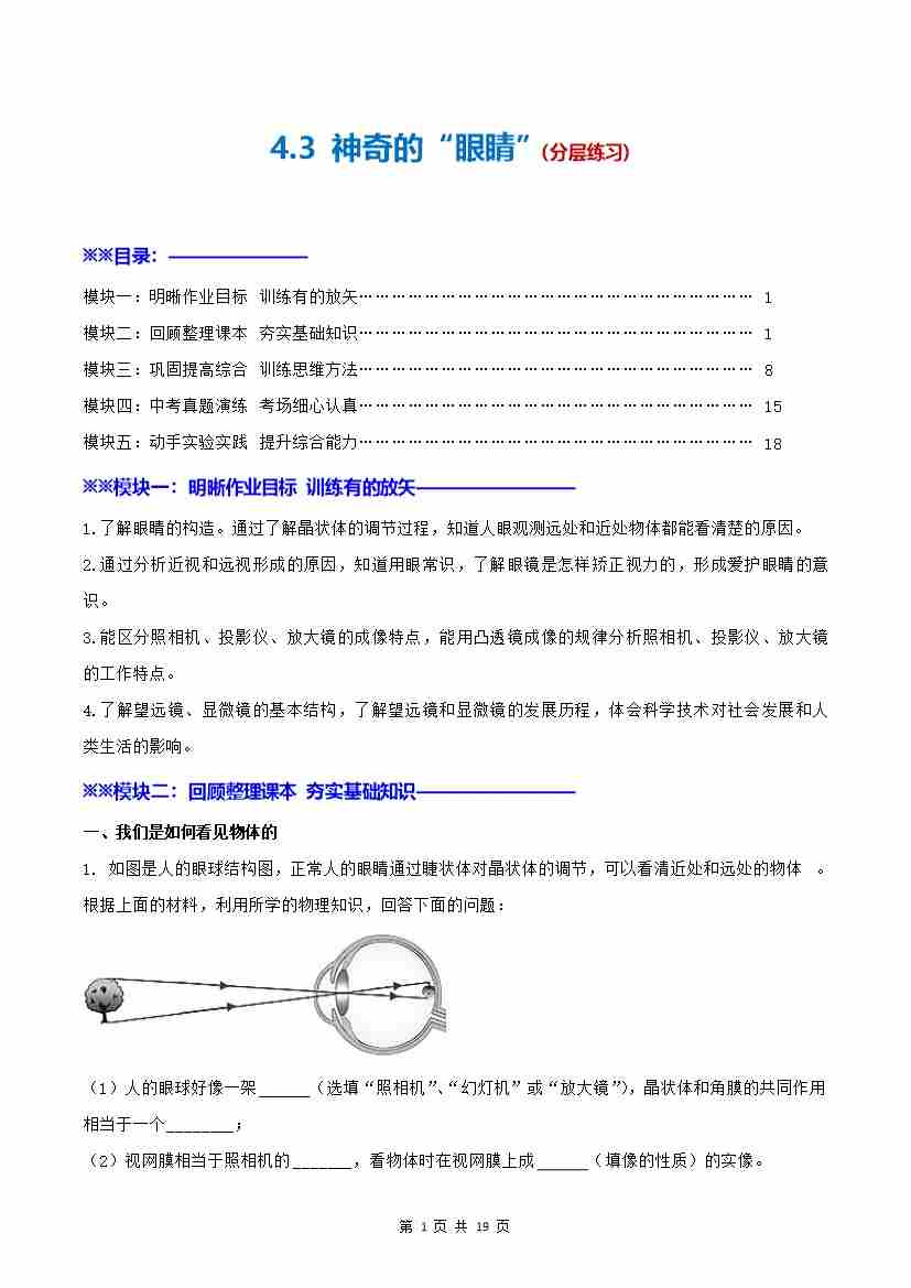 首页 > 全部 > 分层练习 > 4.3 神奇的“眼睛”(解析版)