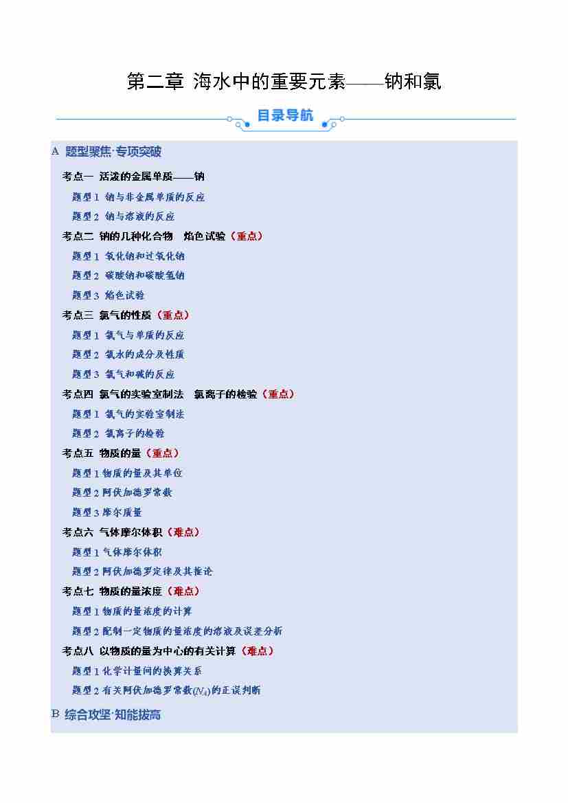 首页 > 全部 > 专项练习 > 第二章 海水中的重要元素——钠和氯(教师版)