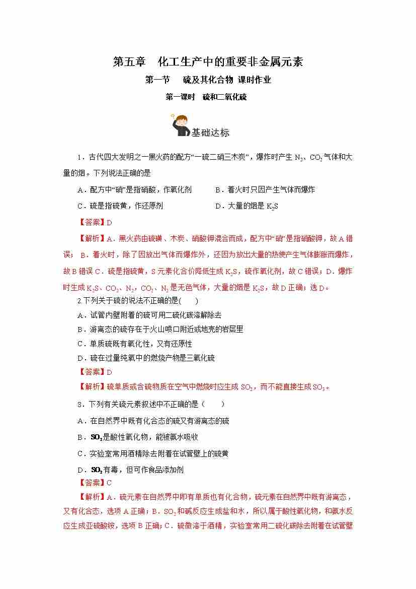 首页 > 全部 > 分层作业 > 5.1.1 硫及其化合物—硫和二氧化硫(分层作业)-(人教版2019必修第二册)(解析版)
