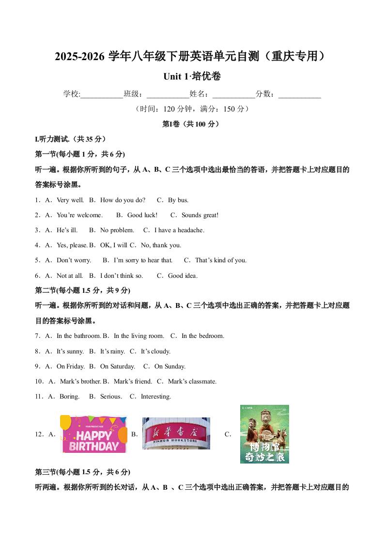 首页 > 全部 > 单元地区卷 > 八年级英语下册Unit 2 单元自测·广东省卷专用
