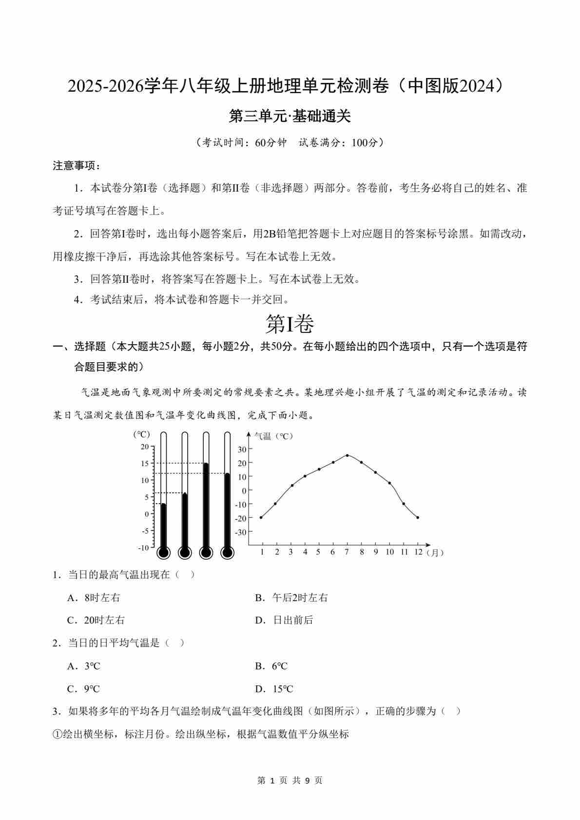 首页 > 全部 > 单元测试 > 第3章 世界气候(单元测试·基础卷)(考试版A4)