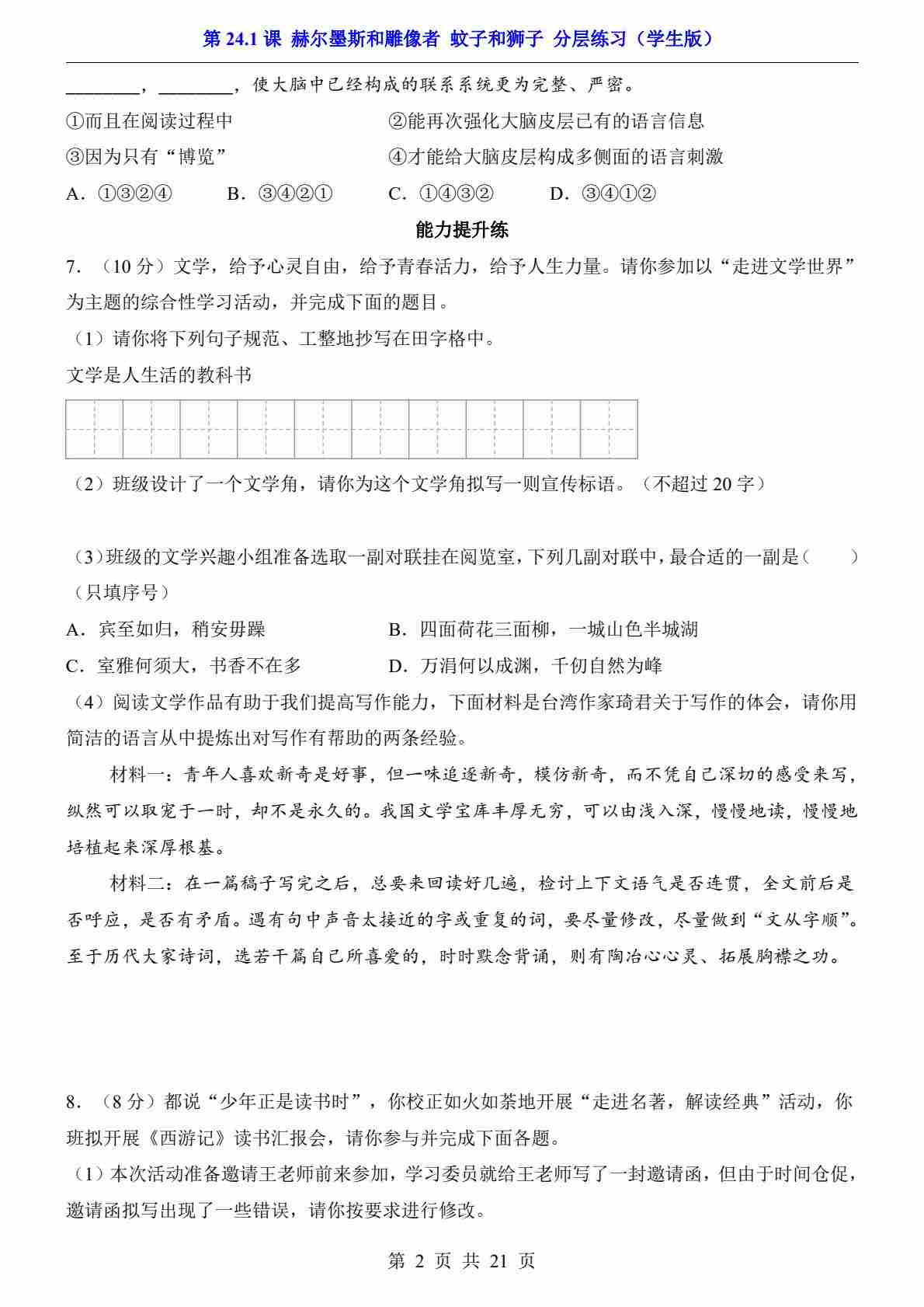 第24.1课 赫尔墨斯和雕像者 蚊子和狮子(分层练习)