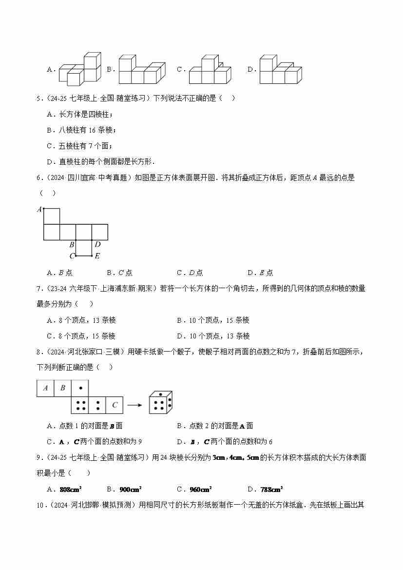 首页 > 全部 > 重难点专题 > 第一章 丰富的图形世界 重难点检测卷(原卷版)
