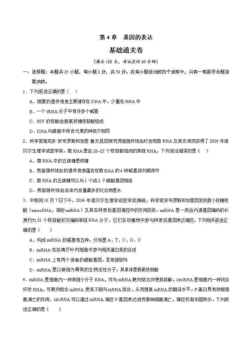 首页 > 全部 > 单元试卷 > 第4章 基因的表达(单元测试·基础卷)(学生版)