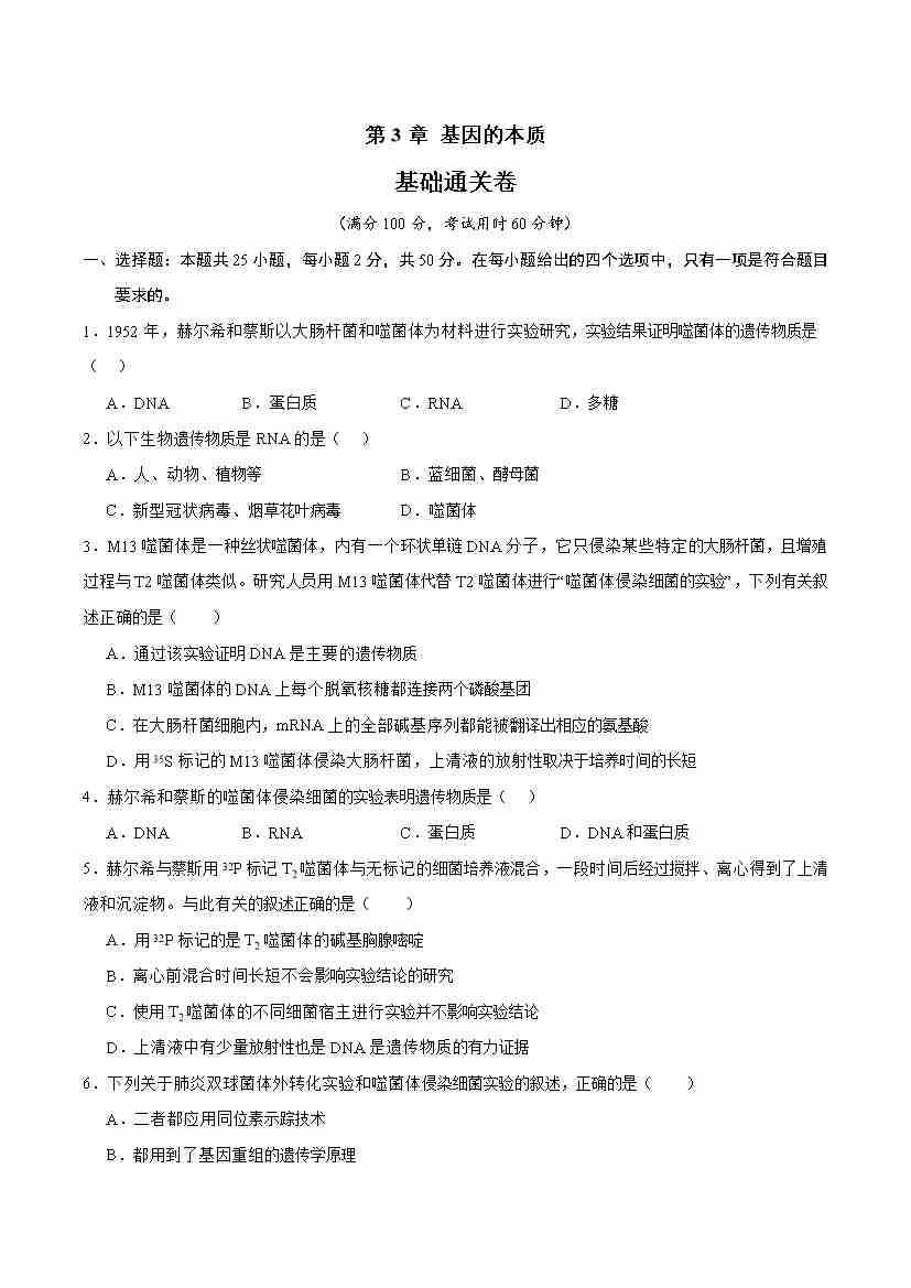 第3章 基因的本质 (单元测试·基础卷)(学生版)