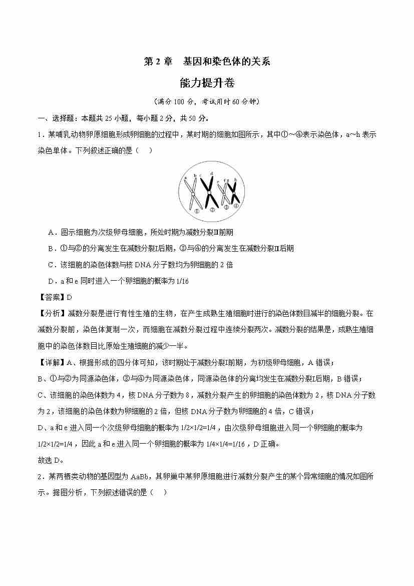 首页 > 全部 > 单元试卷 > 第2章 基因和染色体的关系 (单元测试·提升卷)(教师版)