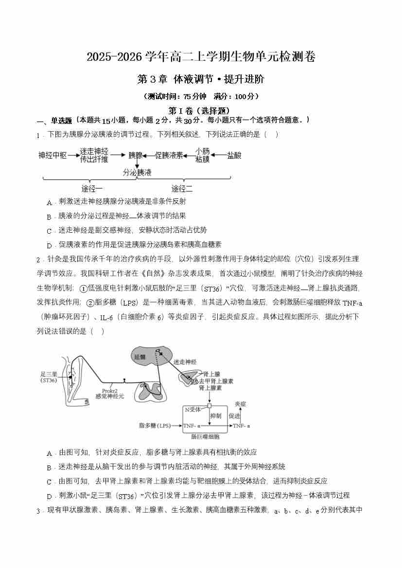 首页 > 全部 > 单元试卷 > 第3章 体液调节(单元测试·提升卷)(学生版)