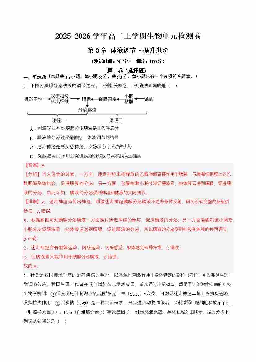 首页 > 全部 > 单元试卷 > 第3章 体液调节(单元测试·提升卷)(教师版)