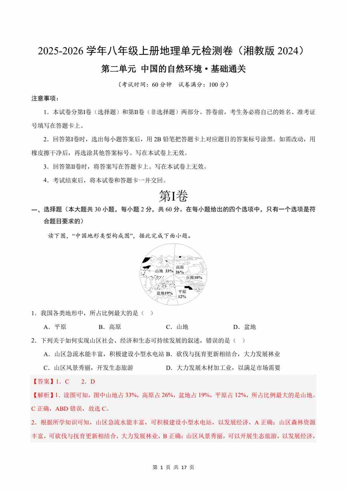 首页 > 全部 > 单元AB卷 > 【湘教】第2章测试·基础卷(解析版)