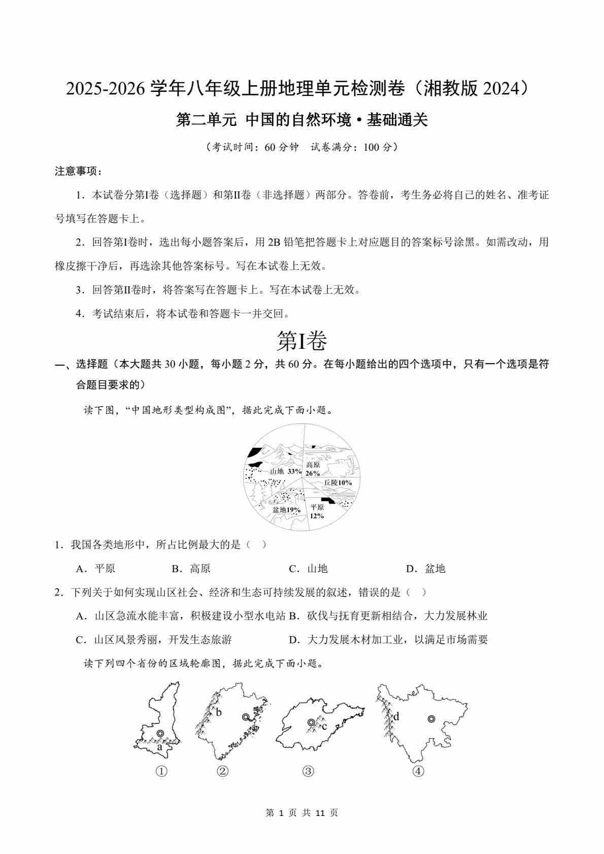 首页 > 全部 > 单元AB卷 > 【湘教】第2章测试·基础卷(考试版A4)