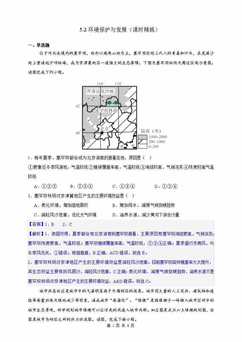首页 > 全部 > 同步作业 > 【情境·素养】5.2环境保护与发展 课时精练(解析)-2025~2026学年人教版(2024版)