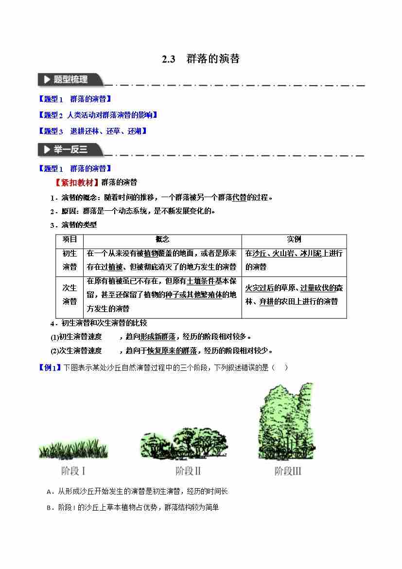 首页 > 全部 > 举一反三 > 2.3 群落的演替—举一反三系列 学生版