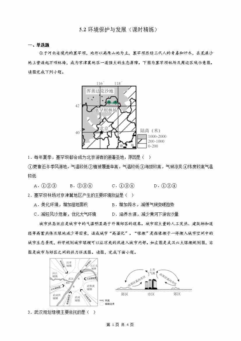 首页 > 全部 > 同步作业 > 【情境·素养】5.2环境保护与发展 课时精练(原题)-2025~2026学年人教版(2024版)