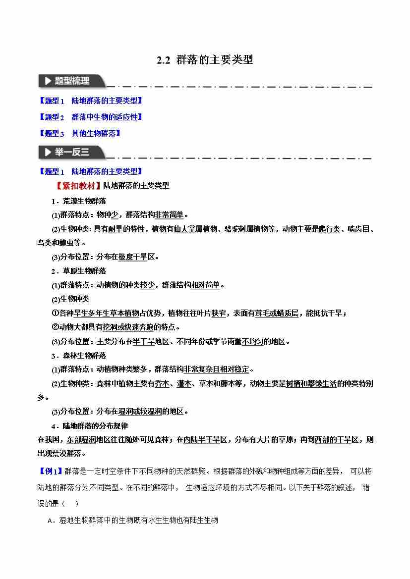 首页 > 全部 > 举一反三 > 2.2 群落的主要类型—举一反三系列 教师版