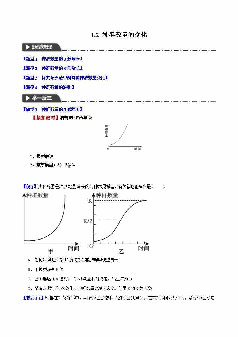 1.2 种群数量的变化—举一反三系列 学生版