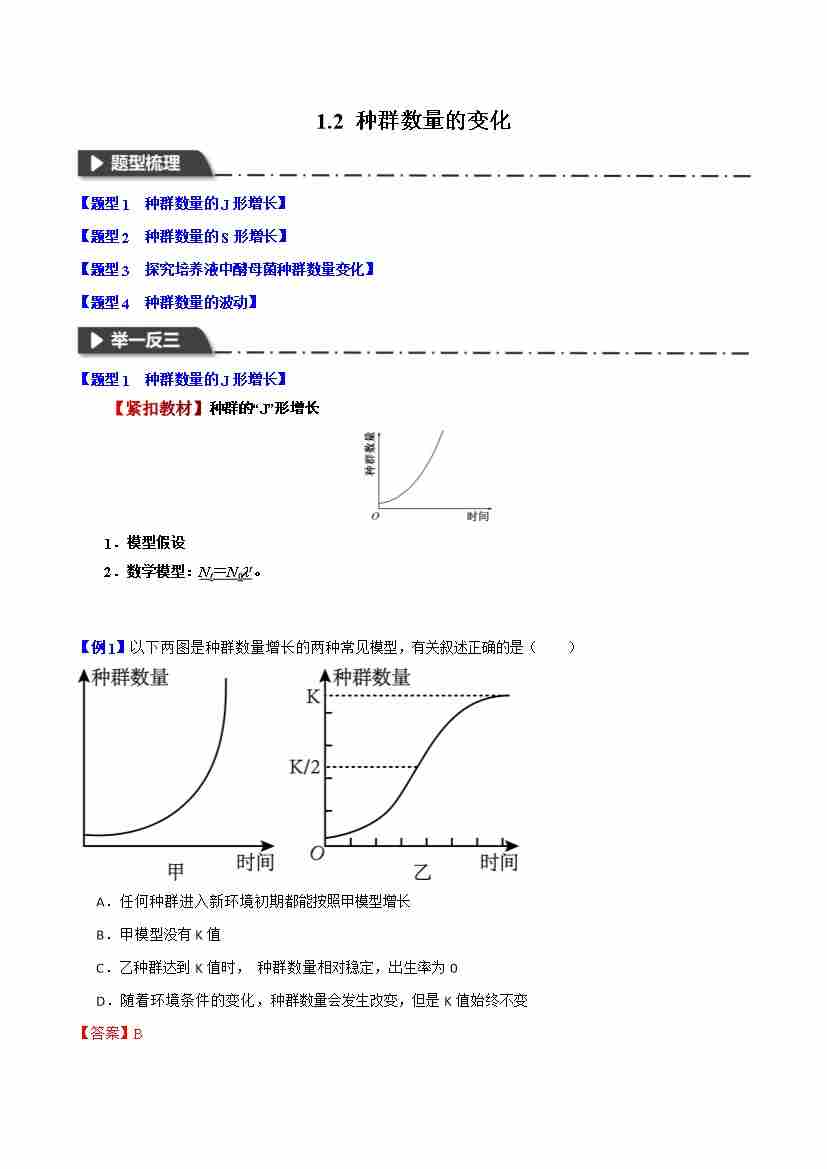 首页 > 全部 > 举一反三 > 1.2 种群数量的变化—举一反三系列 教师版