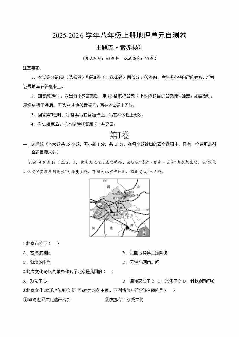 首页 > 全部 > 单元提升卷 > 八下地理主题五自测·提升卷(解析版)