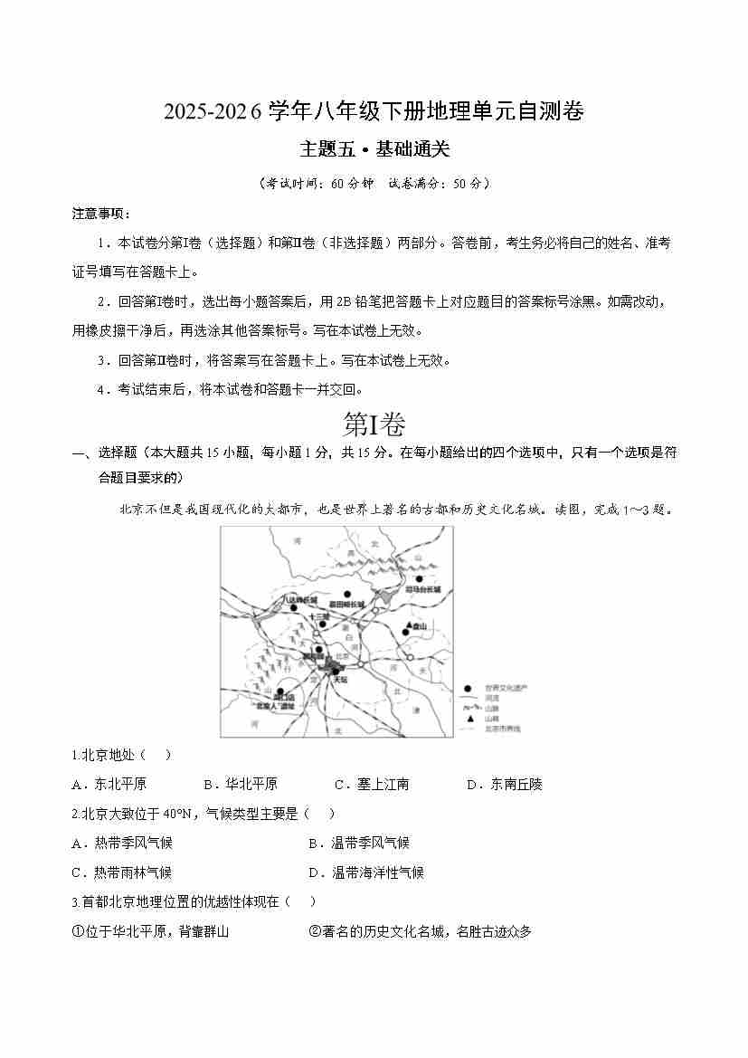 首页 > 全部 > 单元基础卷 > 八下地理主题五测试·基础卷(解析版)