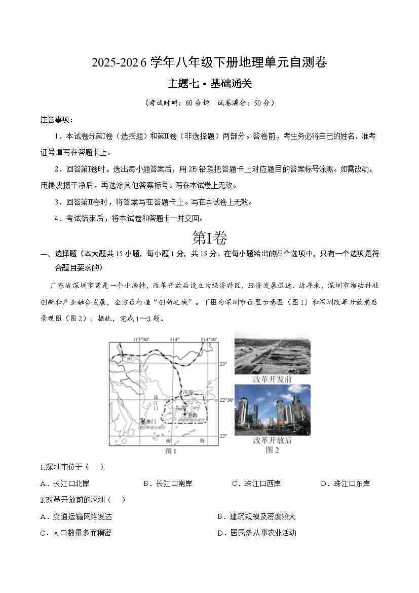 首页 > 全部 > 单元基础卷 > 八下地理主题七测试·基础卷(考试版A4)