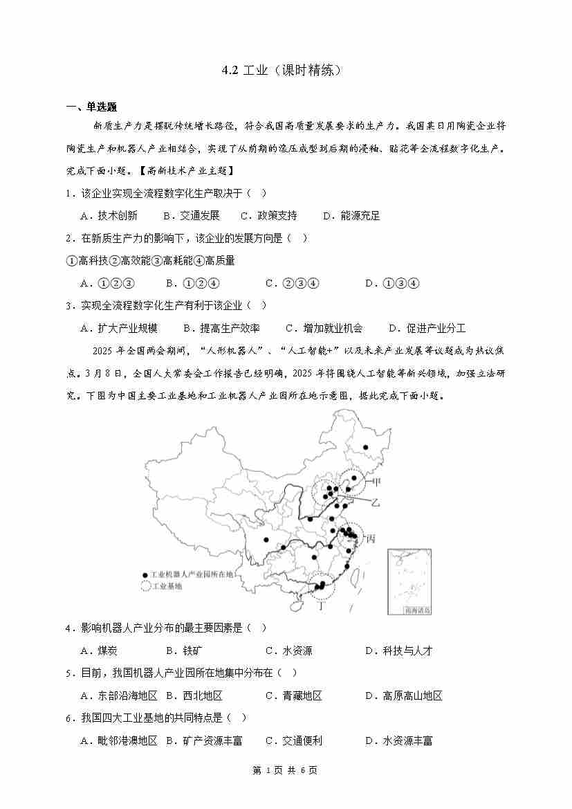 首页 > 全部 > 同步作业 > 【情境·素养】4.2工业 课时精练(原题)-2025~2026学年人教版(2024版)