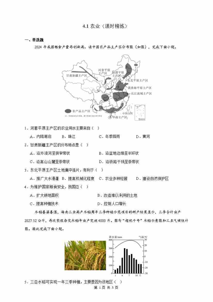 首页 > 全部 > 同步作业 > 【情境·素养】4.1农业 课时精练(原题)-2025~2026学年人教版(2024版)