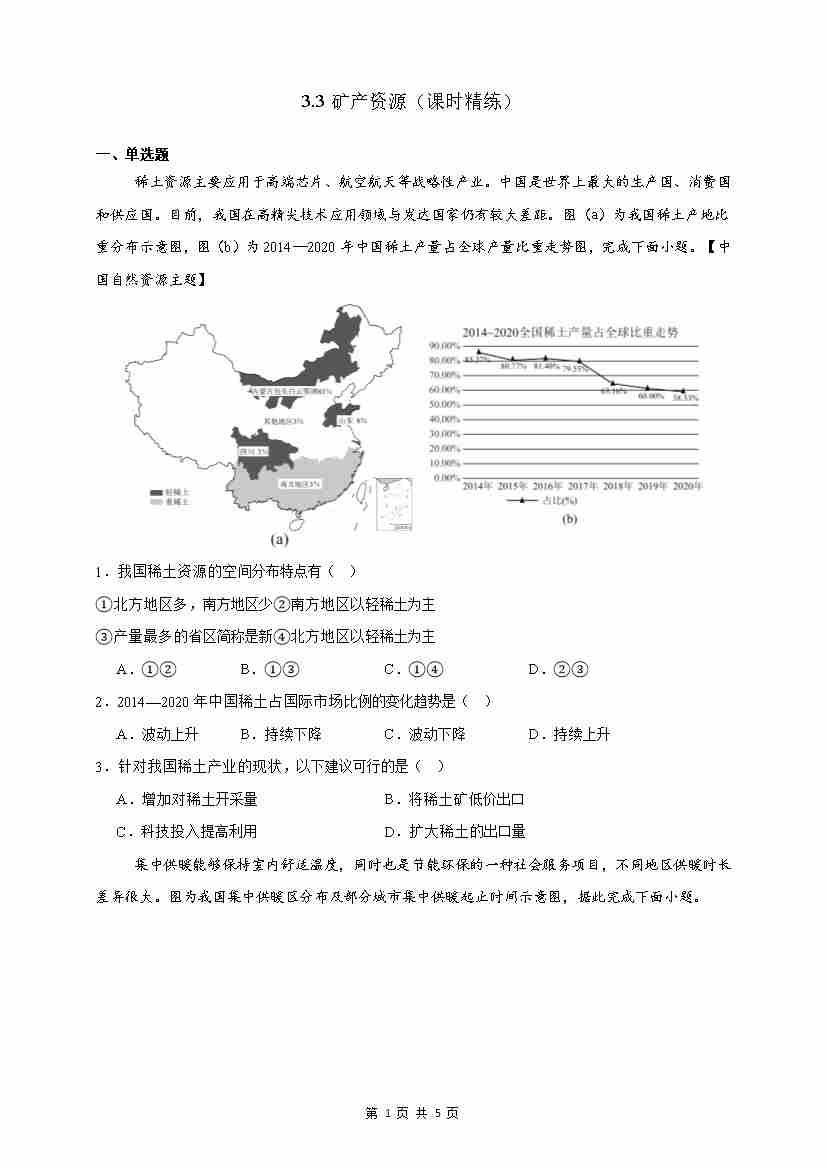 首页 > 全部 > 同步作业 > 【情境·素养】3.3矿产资源 课时精练(原题)-2025~2026学年人教版(2024版)---人教版