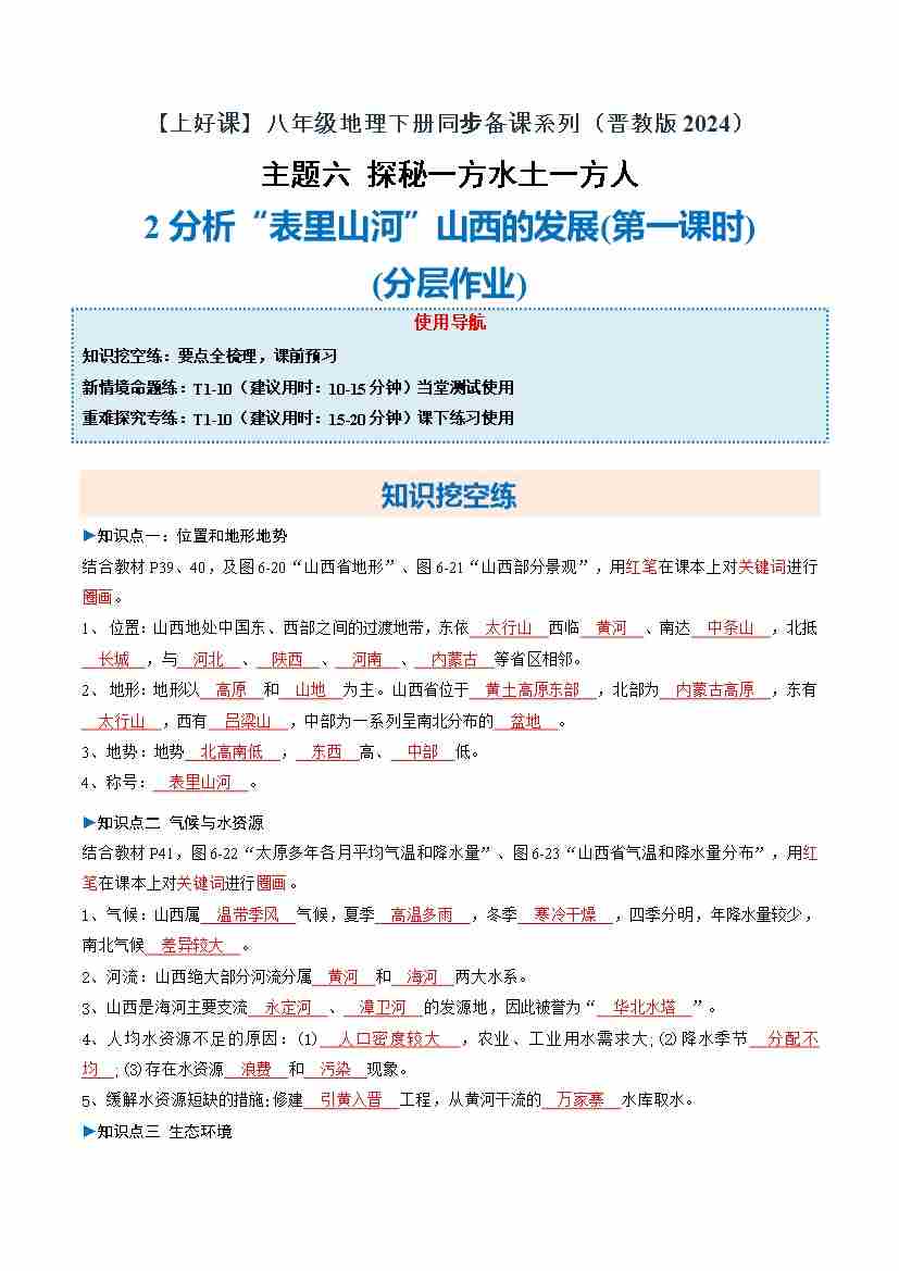 首页 > 全部 > 分层作业 > 6.2 分析“表里山河”山西的发展 第1课时(分层作业)(解析版)