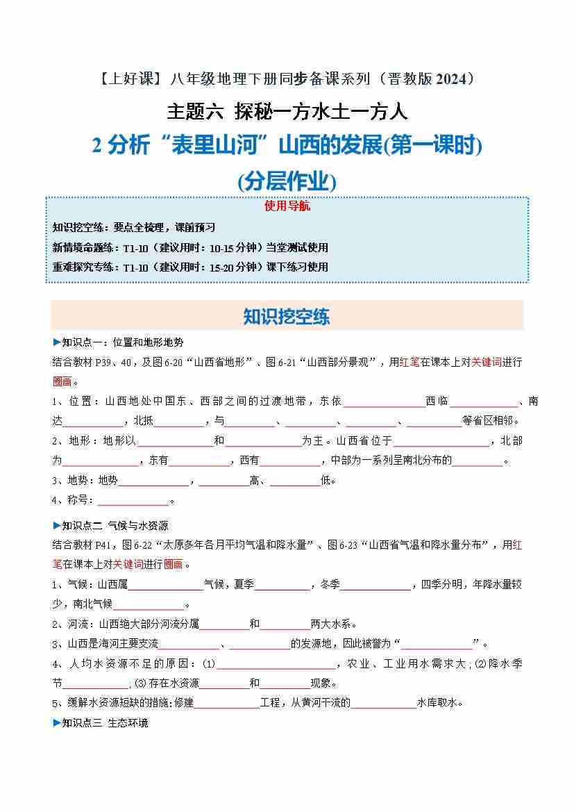 首页 > 全部 > 分层作业 > 6.2 分析“表里山河”山西的发展 第1课时(分层作业)(原卷版)
