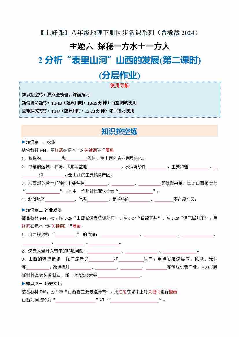 首页 > 全部 > 分层作业 > 6.2 分析“表里山河”山西的发展 第2课时(分层作业)(原卷版)