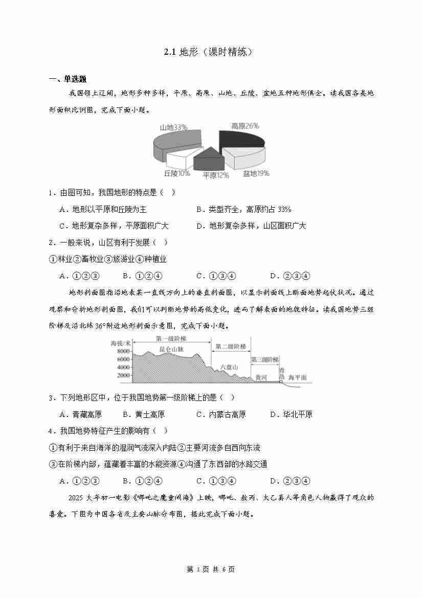 首页 > 全部 > 同步作业 > 【情境·素养】2.1地形 课时精练(原题)-2025~2026学年人教版(2024版)---人教版