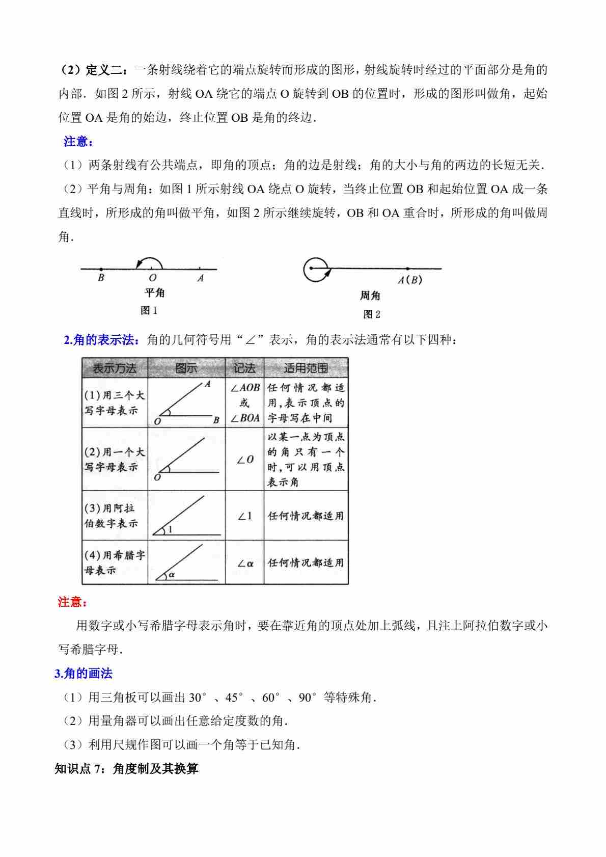 第四章 基本平面图形(14个知识归纳)