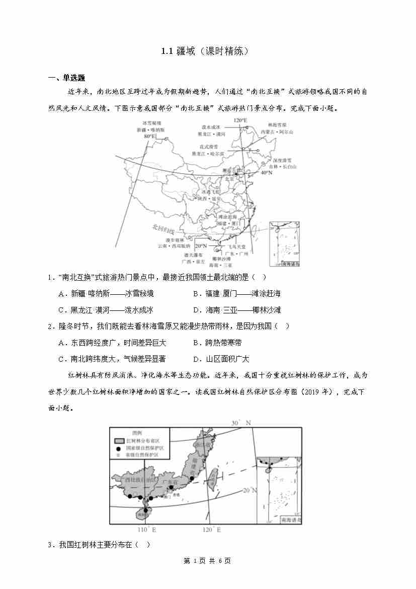 首页 > 全部 > 同步作业 > 【情境·素养】1.1疆域 课时精练(原题)-2025~2026学年人教版(2024版)---人教版