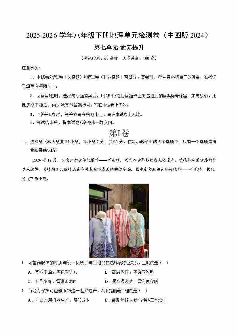 首页 > 全部 > 单元提升卷 > 第七章 认识地区(单元测试·提升卷)(A4考试版)