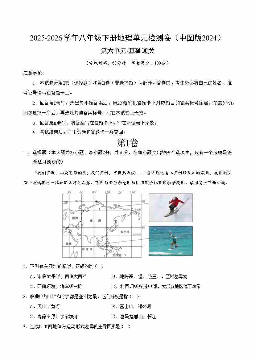 首页 > 全部 > 单元测试 > 第六章 认识大洲(单元测试·基础卷)(考试版A4)