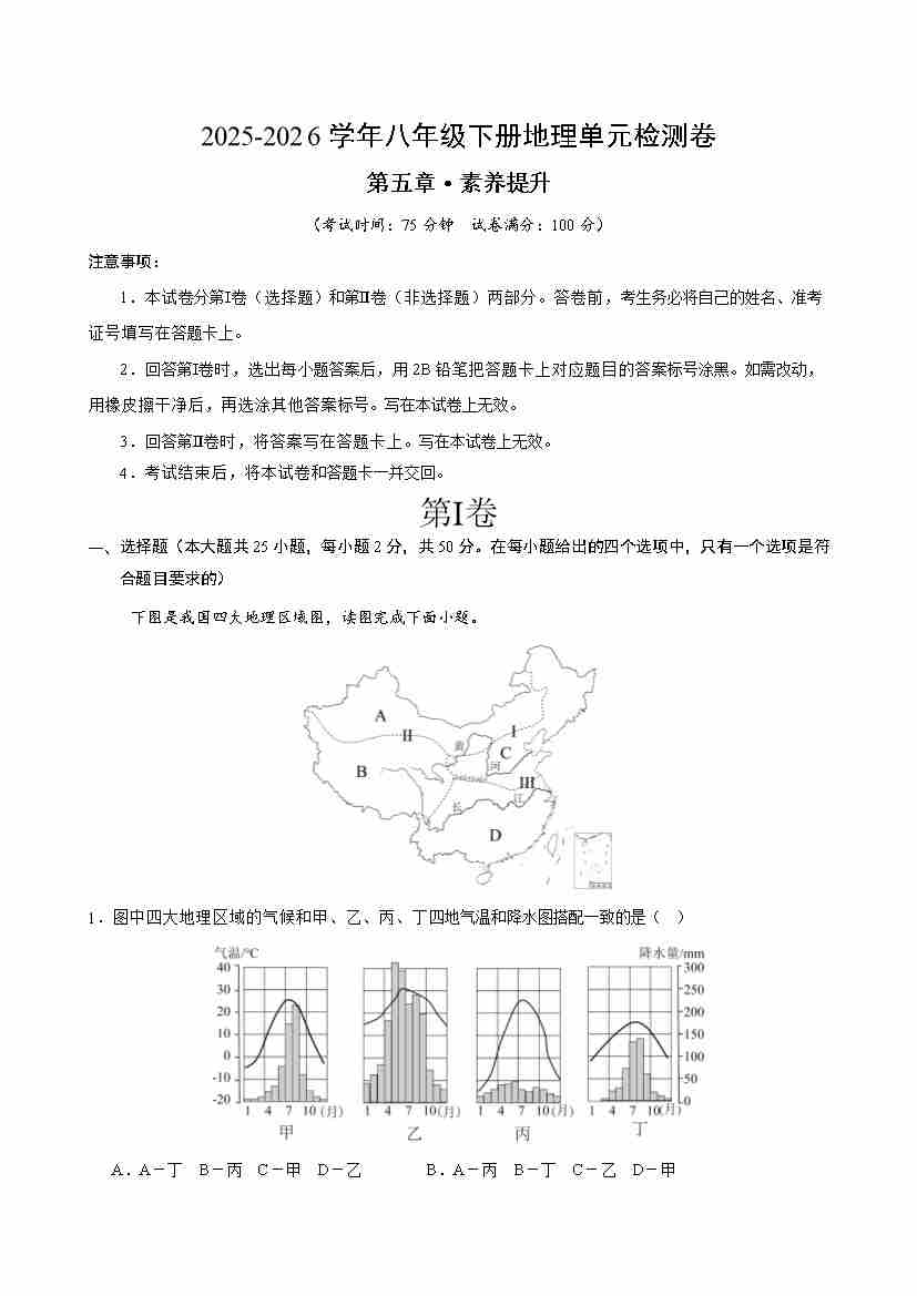 首页 > 全部 > 单元提升卷 > 八下地理第五章测试·提升卷(解析版)