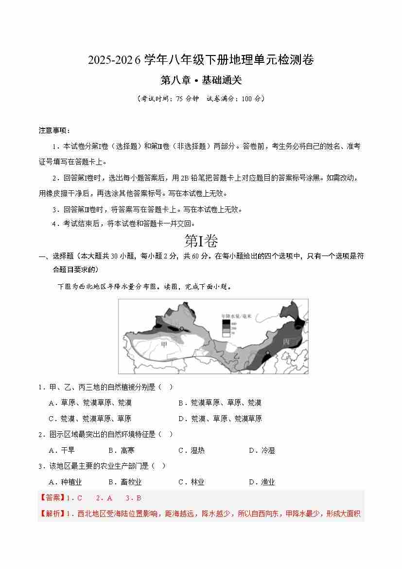 首页 > 全部 > 单元基础卷 > 八下地理第八章测试·基础卷(解析版)5