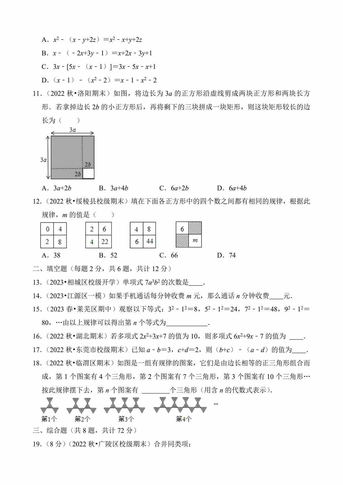 首页 > 全部 > 专项练习 > 第三章 整式及其加减(单元重点综合测试)