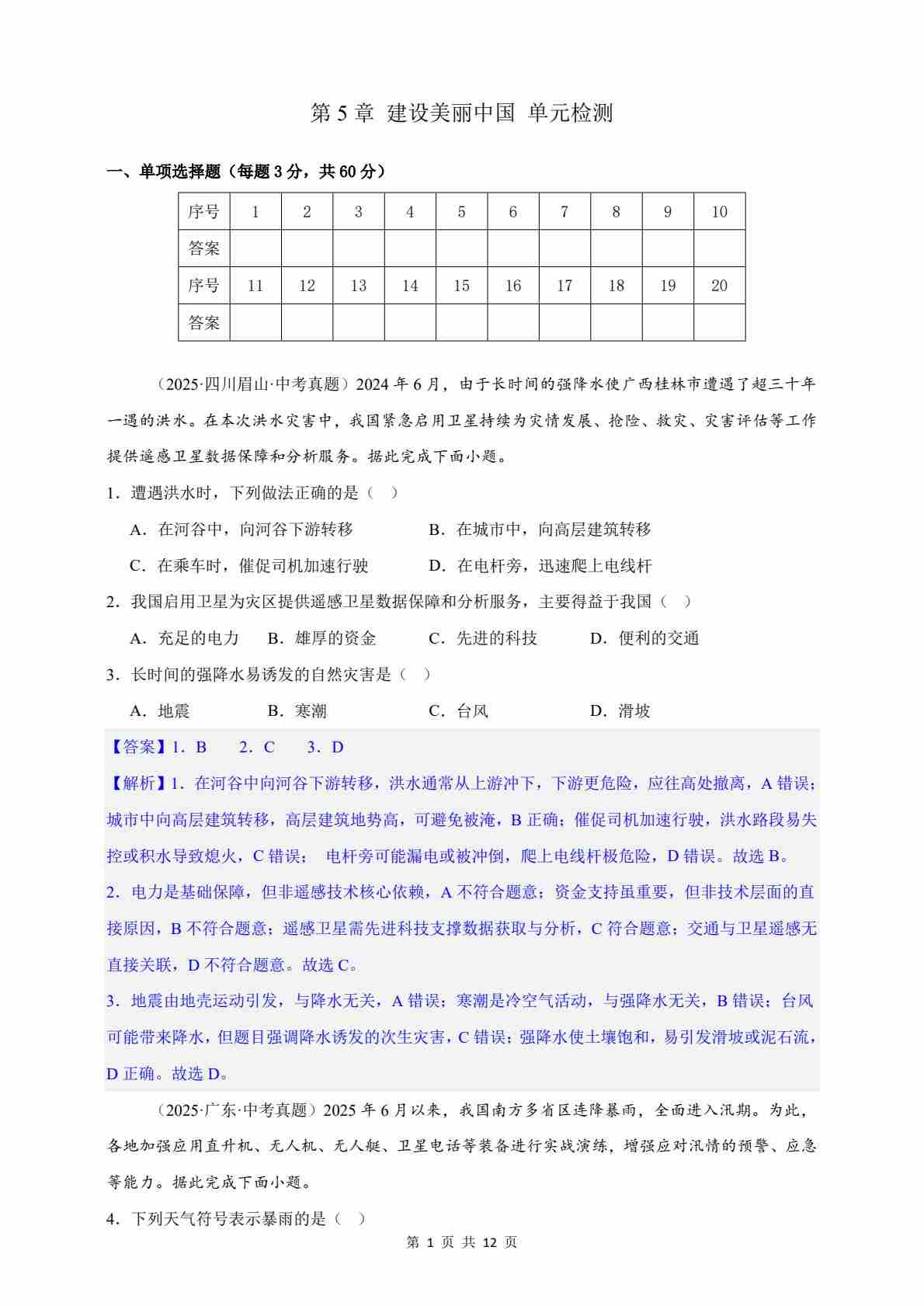 首页 > 全部 > 单元检测 > 【情境·素养】第5章 建设美丽中国 单元检测(解析)-2025~2026学年人教版(2024版)