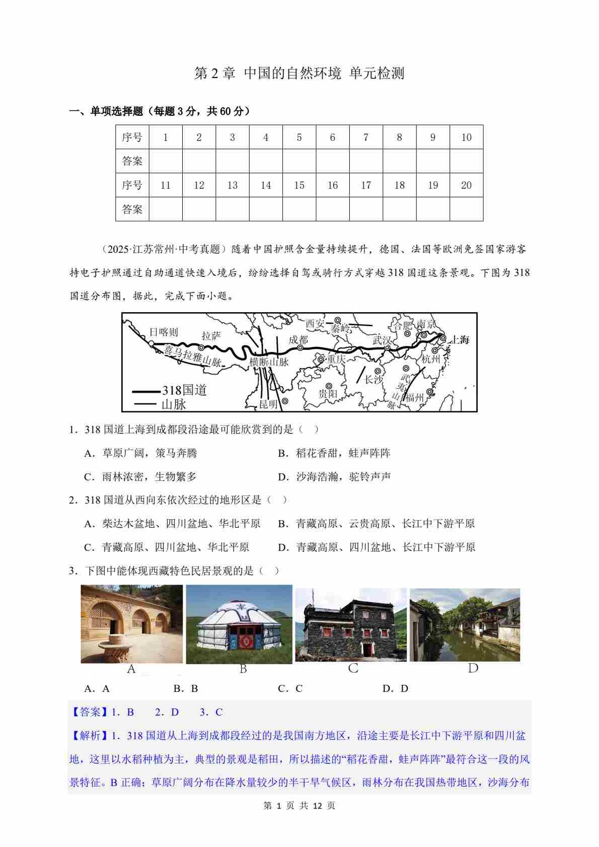 首页 > 全部 > 单元检测 > 【情境·素养】第2章 中国的自然环境 单元检测(解析)-2025~2026学年人教版(2024版)