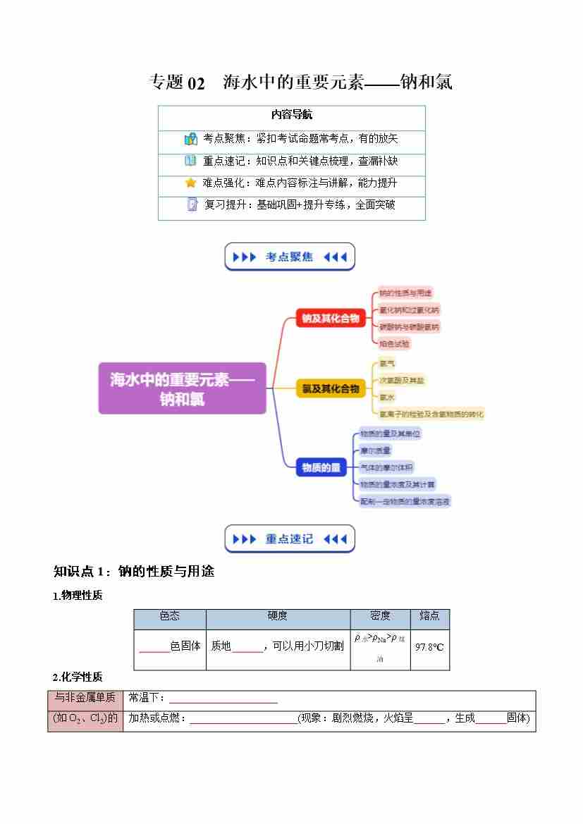 专题02 海水中的重要元素——钠和氯(学生版)
