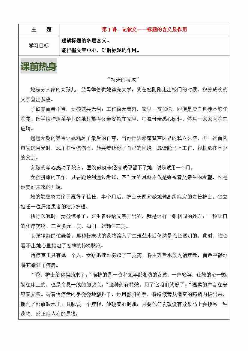 第1讲-记叙文——标题的含义和作用(学生版)