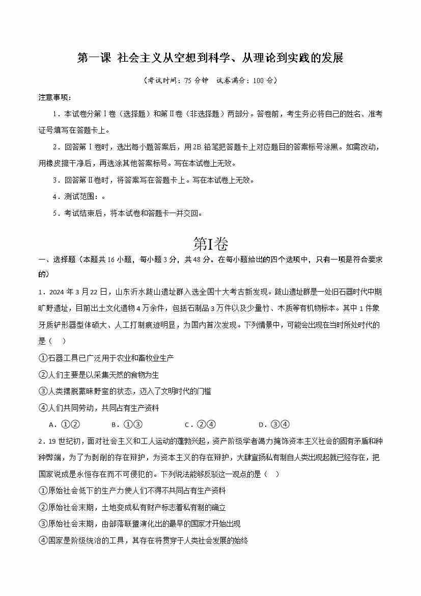 首页 > 全部 > 单元试卷 > 第一课 社会主义从空想到科学、从理论到实践的发展 (单元测试·基础卷) (学生版)