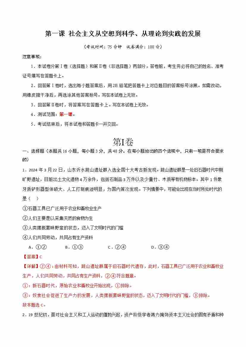 首页 > 全部 > 单元试卷 > 第一课 社会主义从空想到科学、从理论到实践的发展 (单元测试·基础卷) (教师版)