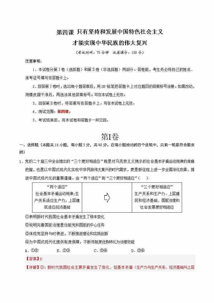 首页 > 全部 > 单元测试 > 第四课 只有坚持和发展中国特色社会主义才能实现中华民族的伟大复兴(单元测试·提升卷)(教师版)