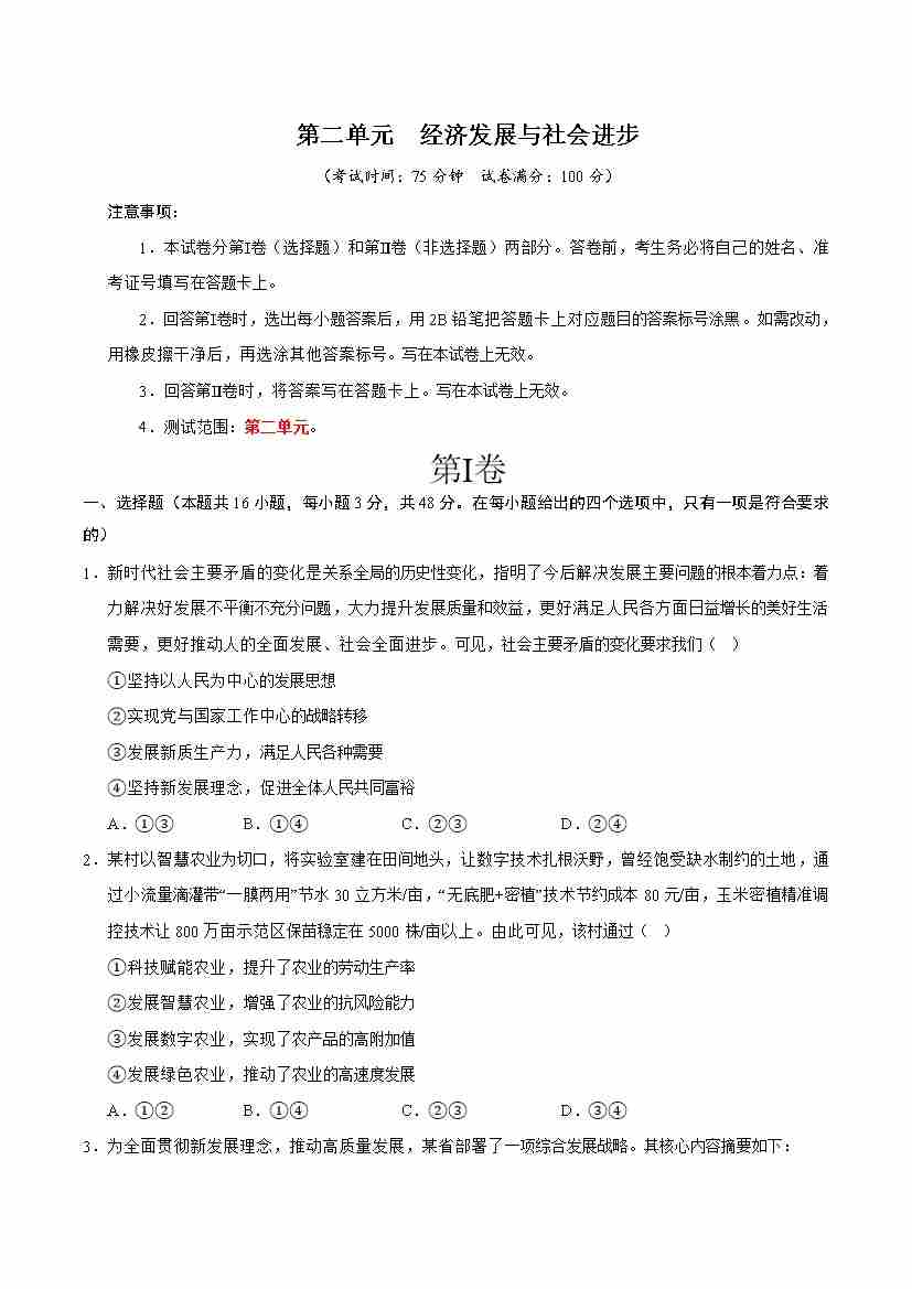 首页 > 全部 > 单元测试 > 第二单元 经济发展与社会进步 (单元测试·提升卷)(考试版A4)