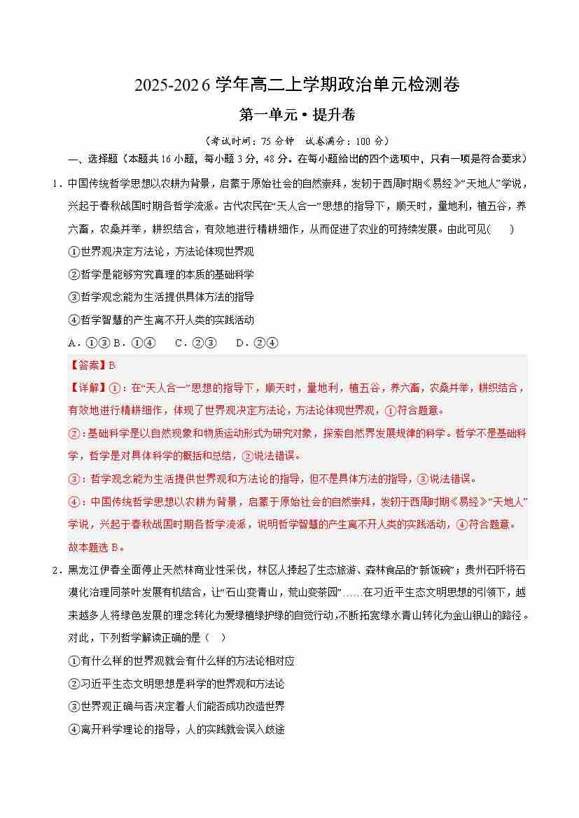首页 > 全部 > 单元测试 > 第一单元 探索世界与把握规律(单元测试·提升卷)(教师版)