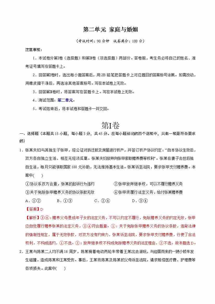 首页 > 全部 > 单元测试 > 第二单元 家庭与婚姻 (单元测试·提升卷) (教师版)