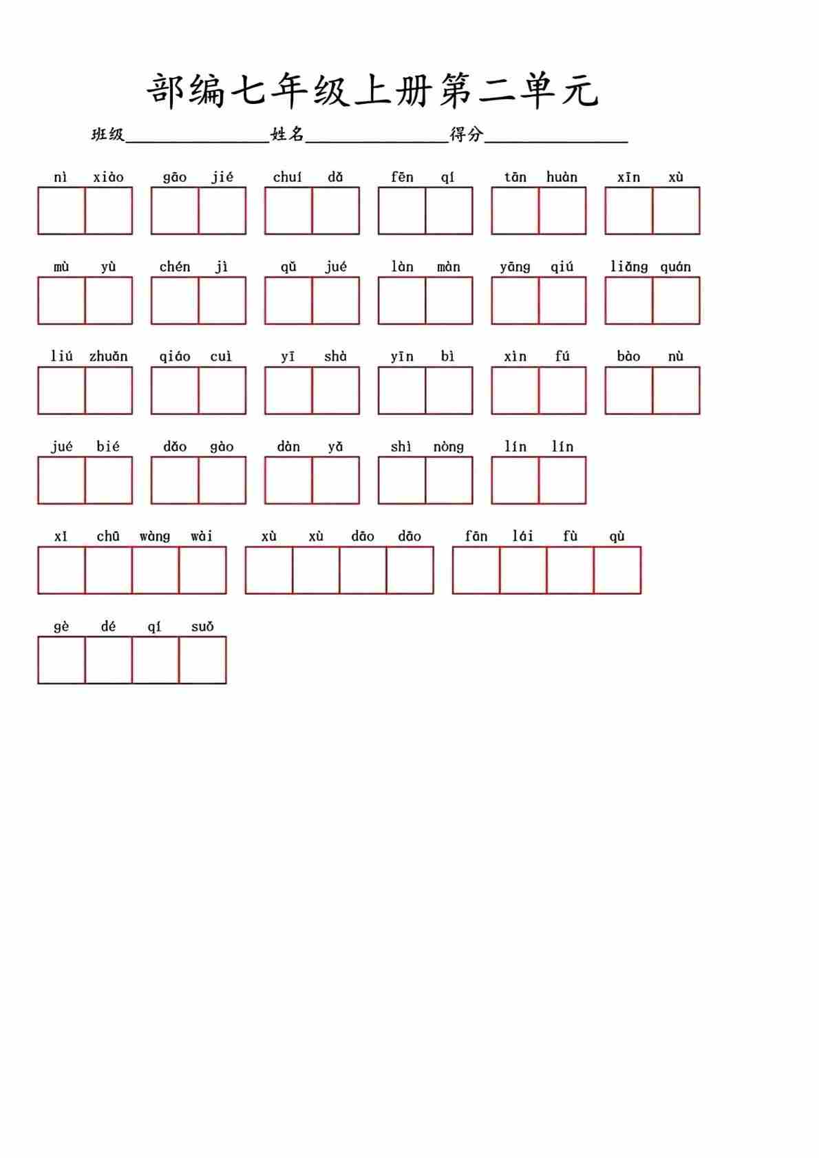 首页 > 全部 > 拼音词语类 > 七上语文1-6单元看拼音写词语