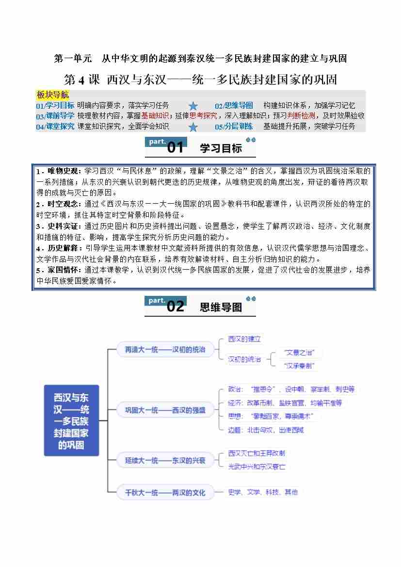 首页 > 全部 > 同步讲义 > 第4课 西汉与东汉——统一多民族封建国家的巩固(教师版)