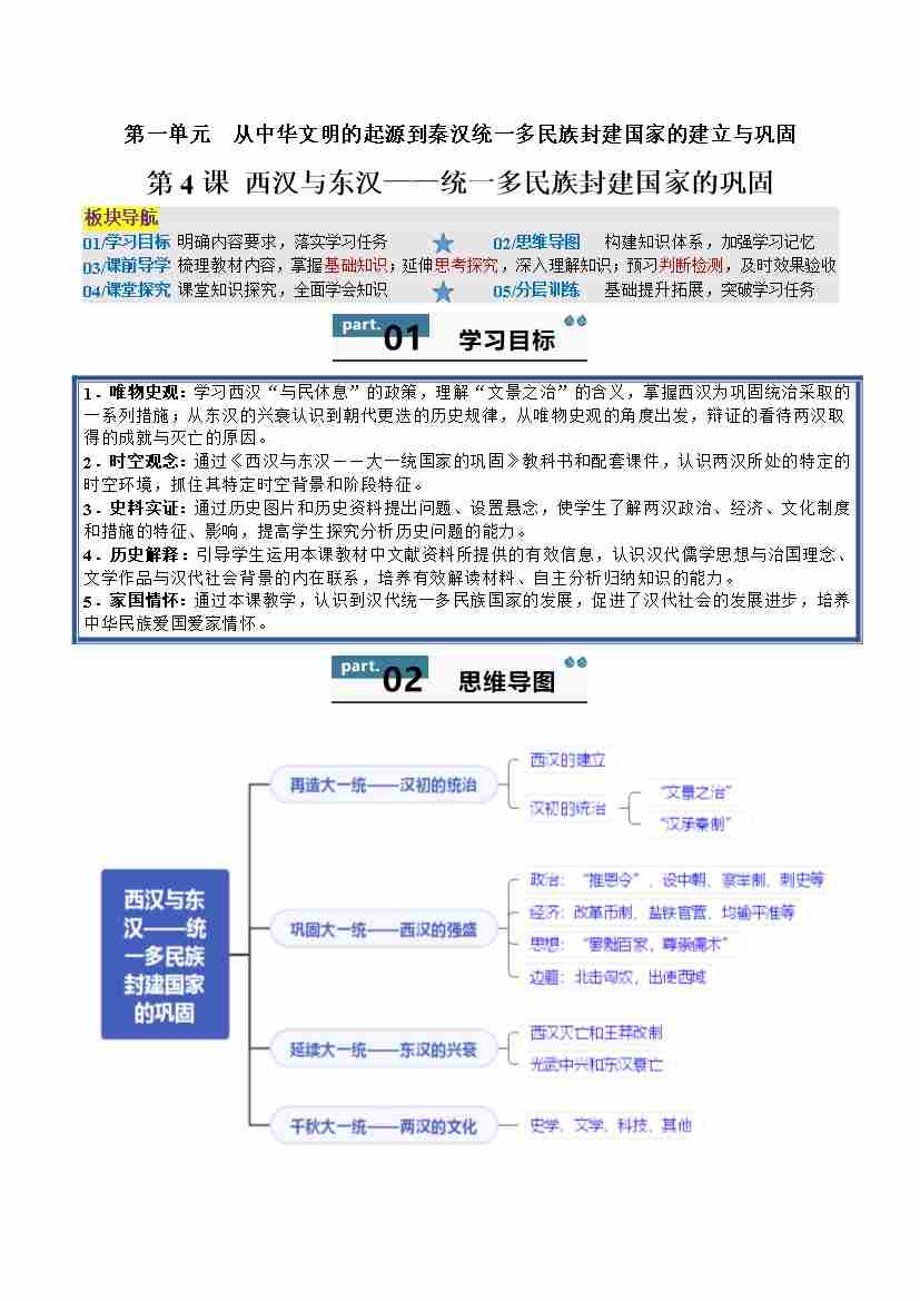 第4课 西汉与东汉——统一多民族封建国家的巩固(学生版)